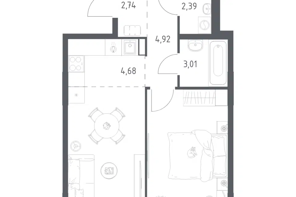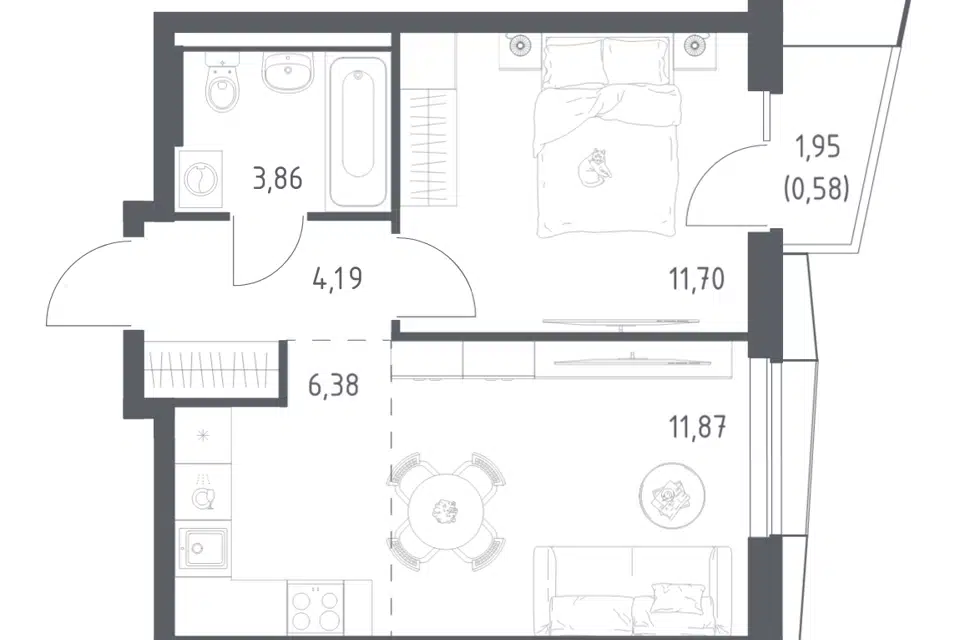 1-комн. кв., 38.58 м², 24/24 этаж