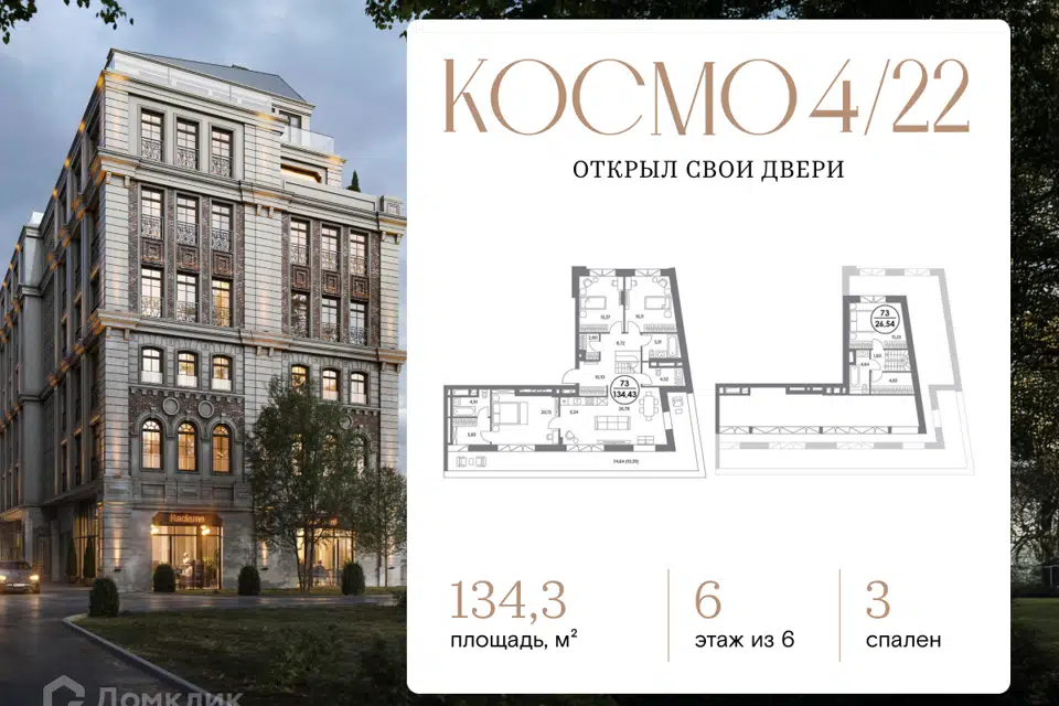 3-комн. кв., 134.3 м², 6/6 этаж