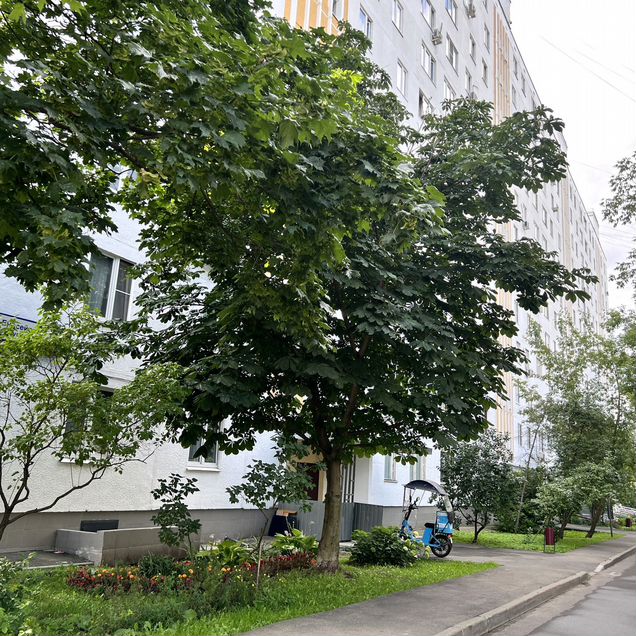 Квартира в монолитном доме. Благоустроенный двор с детскими и спортивными площадками. Во дворе всажены деревья, цветы и кустарники.