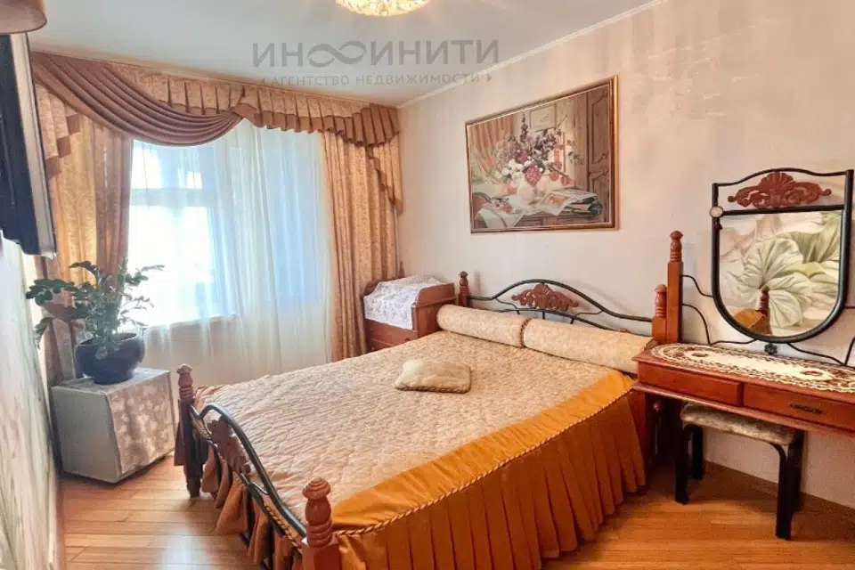 Квартира просторная, светлая, комнаты изолированные, в спальне две застекленные, утепленные, лоджии. В одной из лоджий оборудована небольшая гардеробная. Состояние квартиры хорошее.