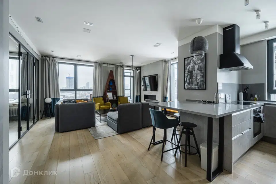 с просторной кухней гостиной (30 кв. м) и высотой потолков 3 м.