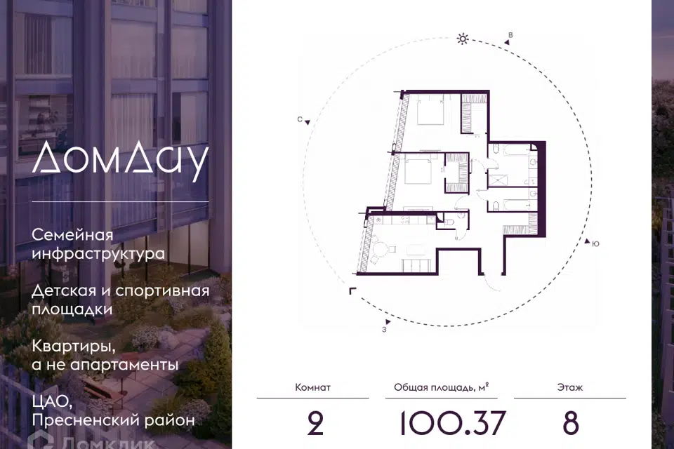 2-комн. кв., 100.37 м², 8/87 этаж