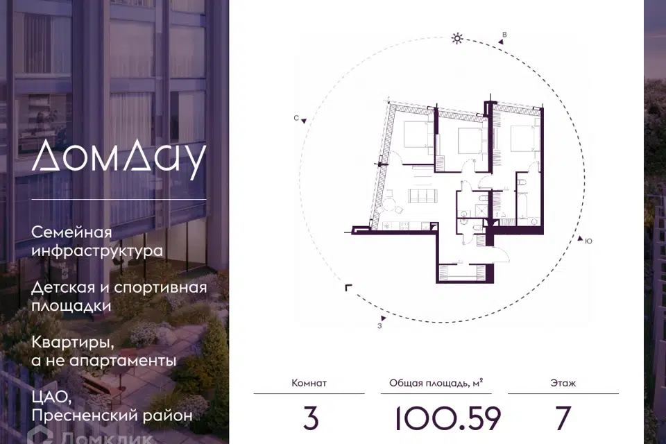3-комн. кв., 100.59 м², 7/87 этаж