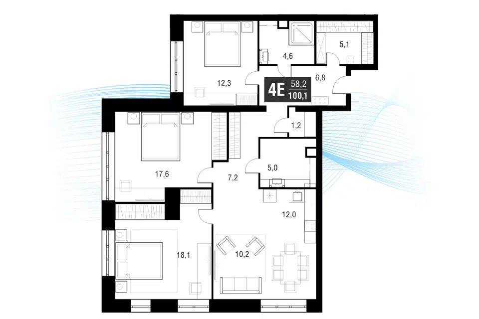 4-комн. кв., 100.4 м², 2/53 этаж