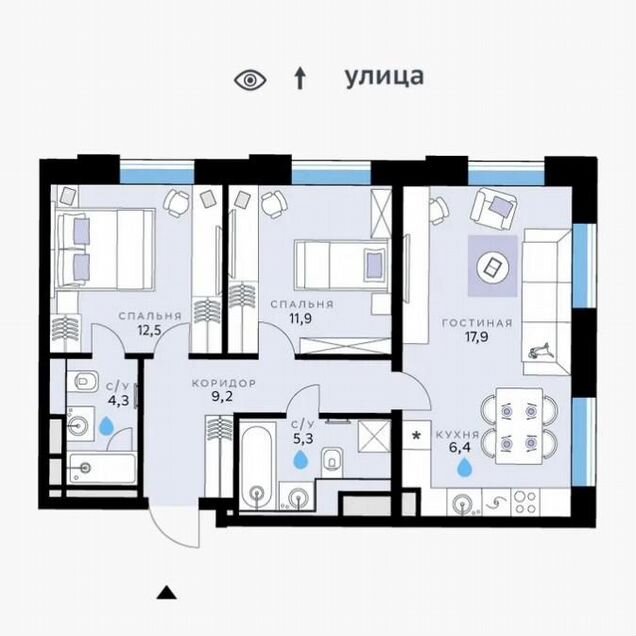 3-комн. кв., 100 м², 9/25 этаж