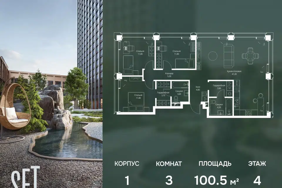 4-комн. кв., 100.7 м², 24/41 этаж