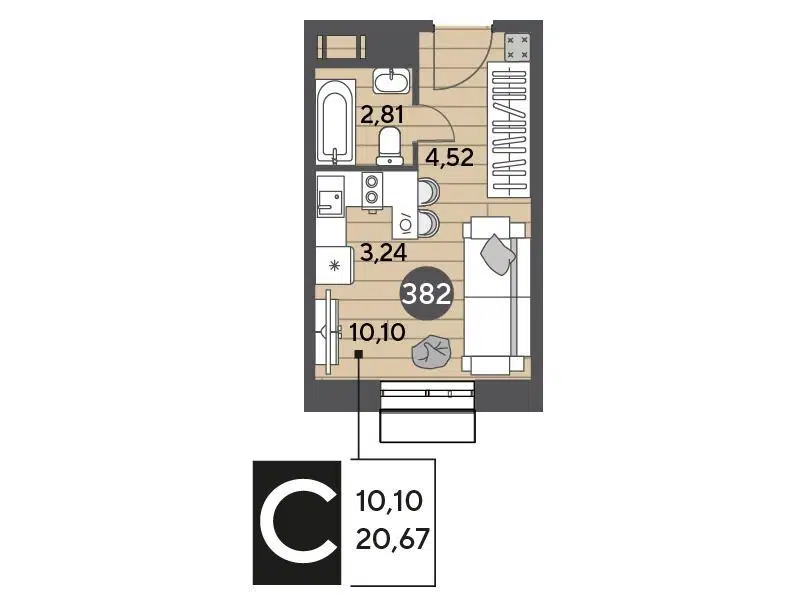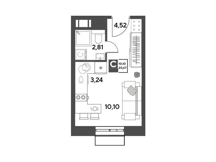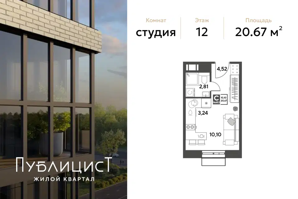 Студия, 20.67 м², 10/15 этаж