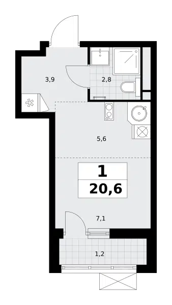 1-комн. кв., 20.9 м², 7/9 этаж