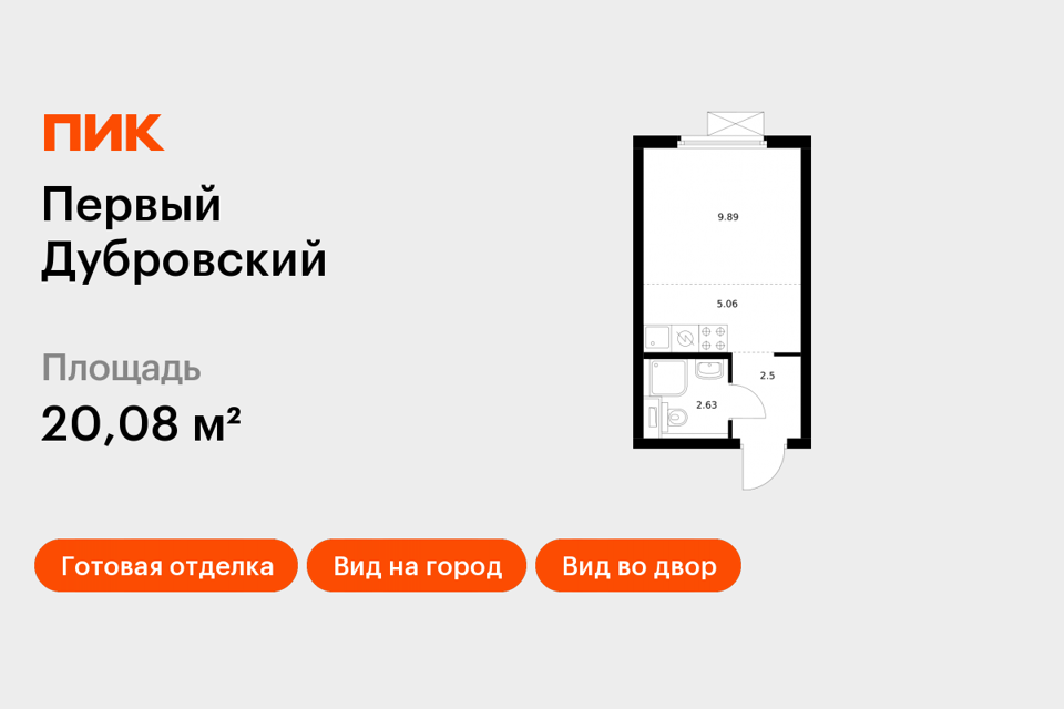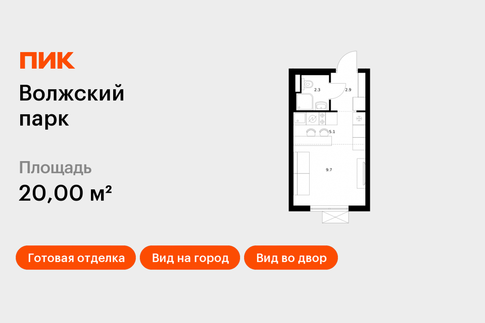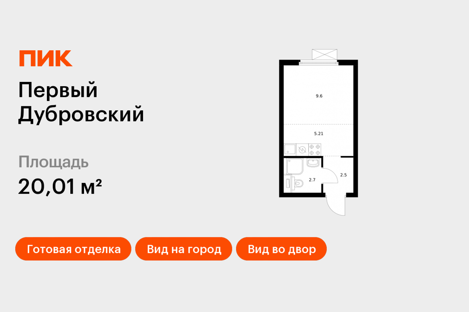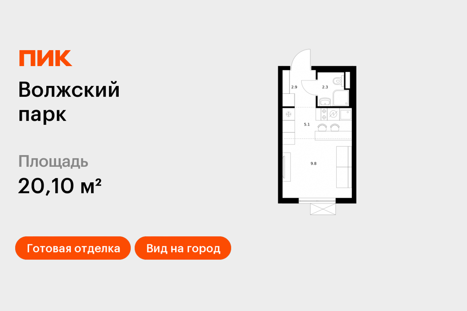Студия, 20.08 м², 18/33 этаж