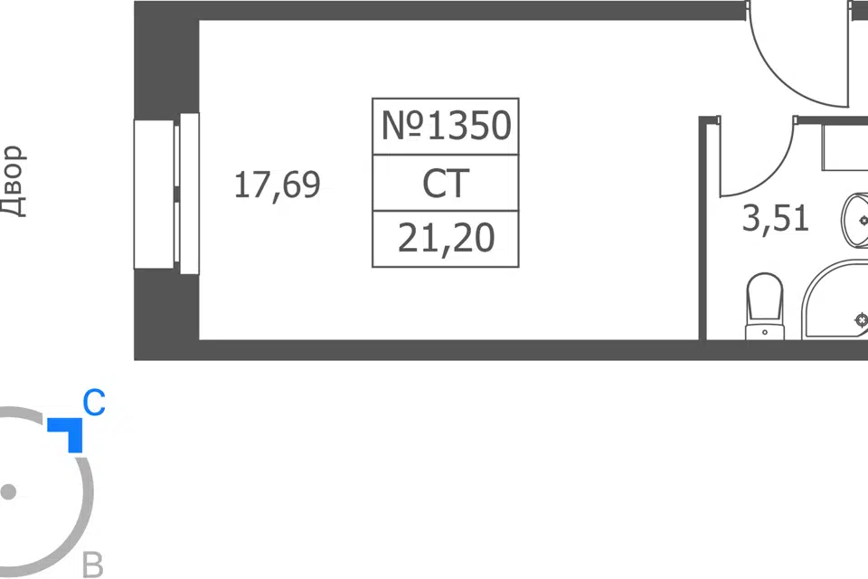 Студия, 21 м², 9/17 этаж