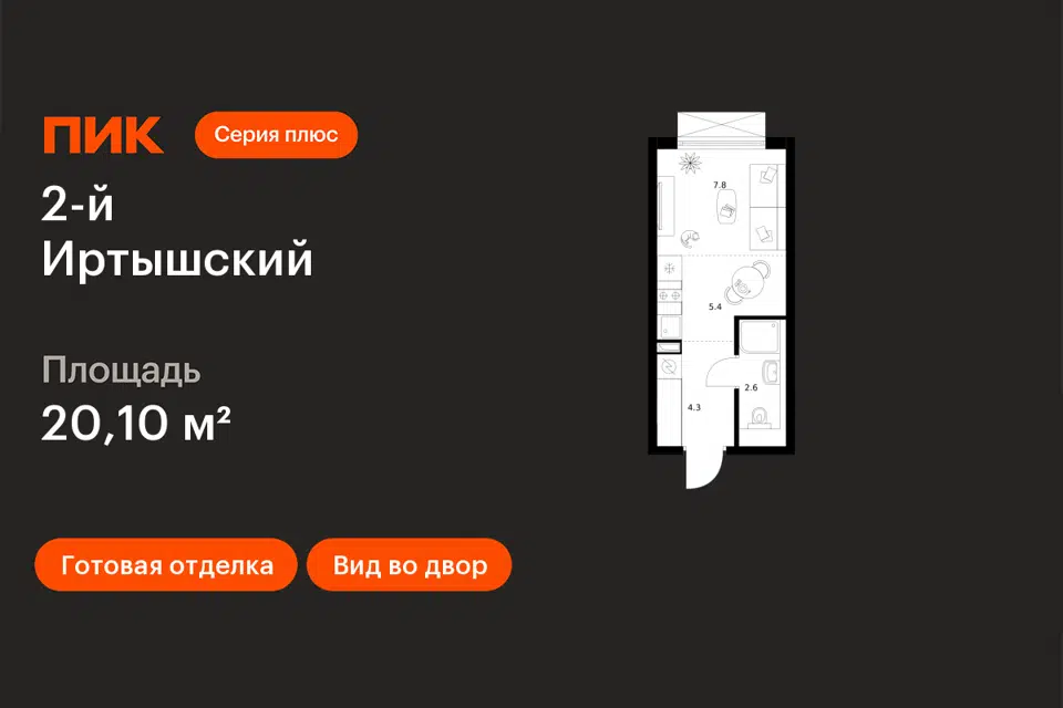 Студия, 20.4 м², 4/43 этаж