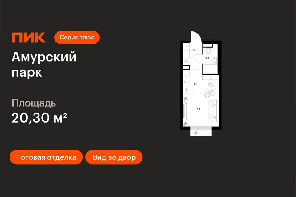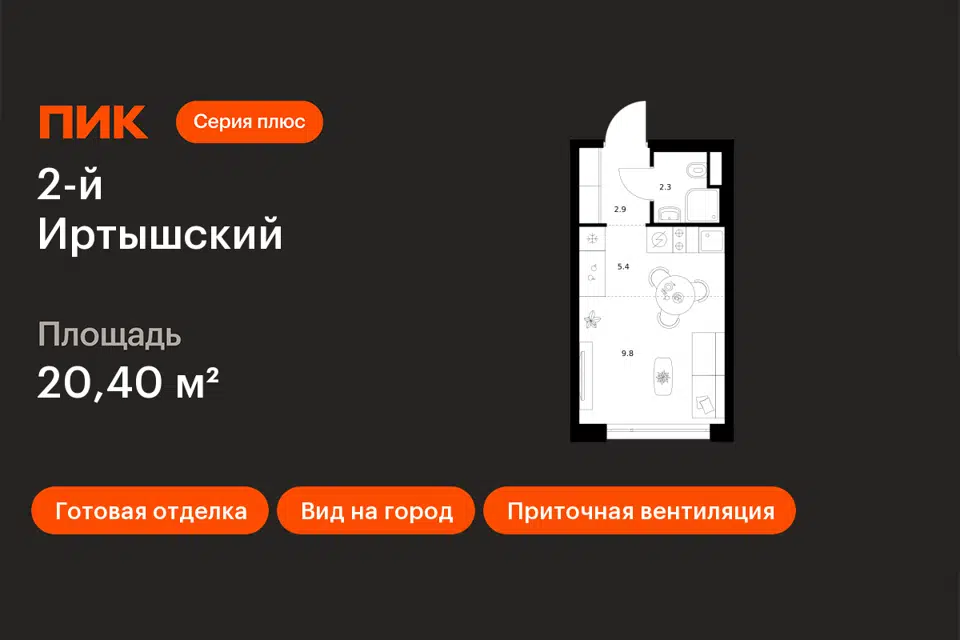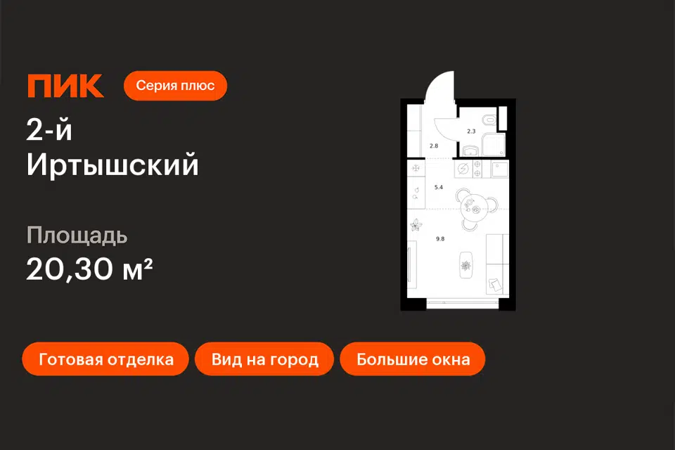 Студия, 20.1 м², 10/30 этаж
