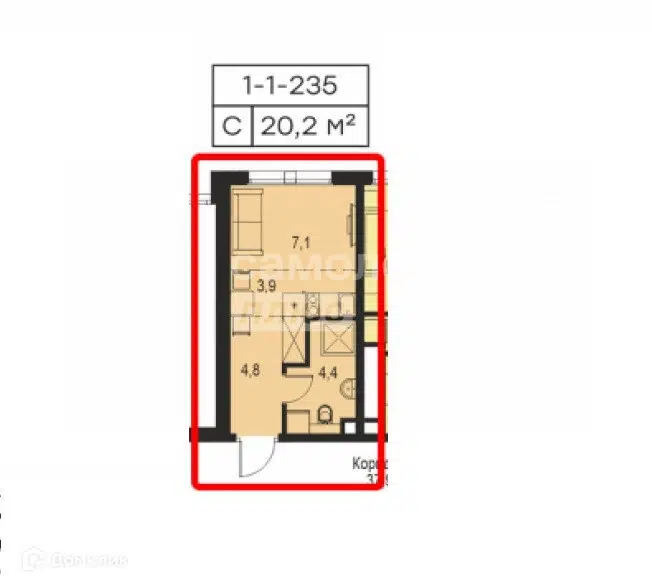 1-комн. кв., 20.8 м², 1/9 этаж