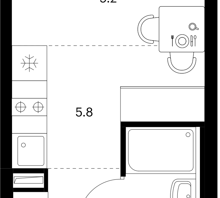 Студия, 20.3 м², 24/32 этаж