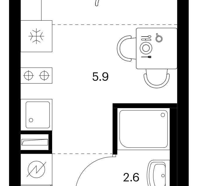 Студия, 20.4 м², 2/6 этаж