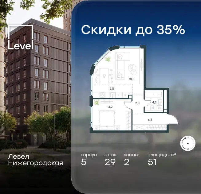2-комн. кв., 51 м², 29/29 этаж