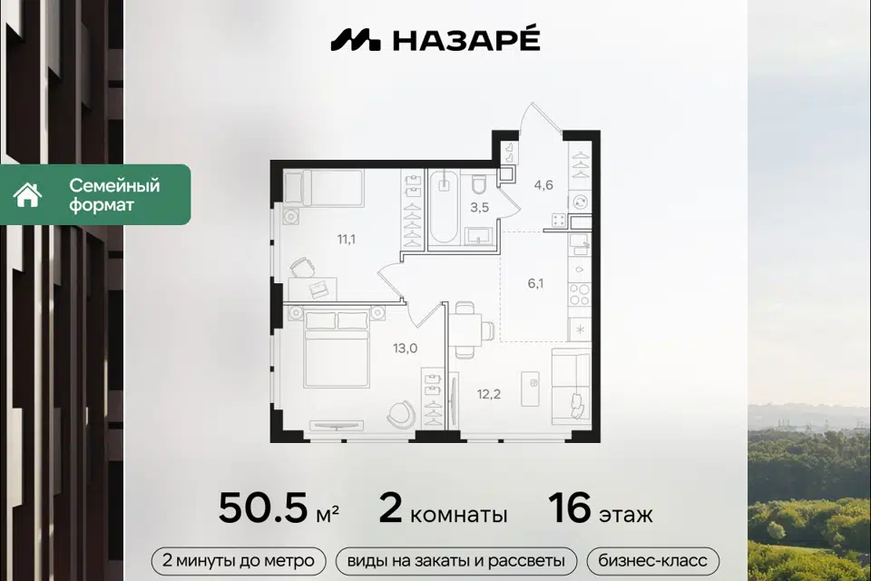 2-комн. кв., 50.5 м², 16/31 этаж
