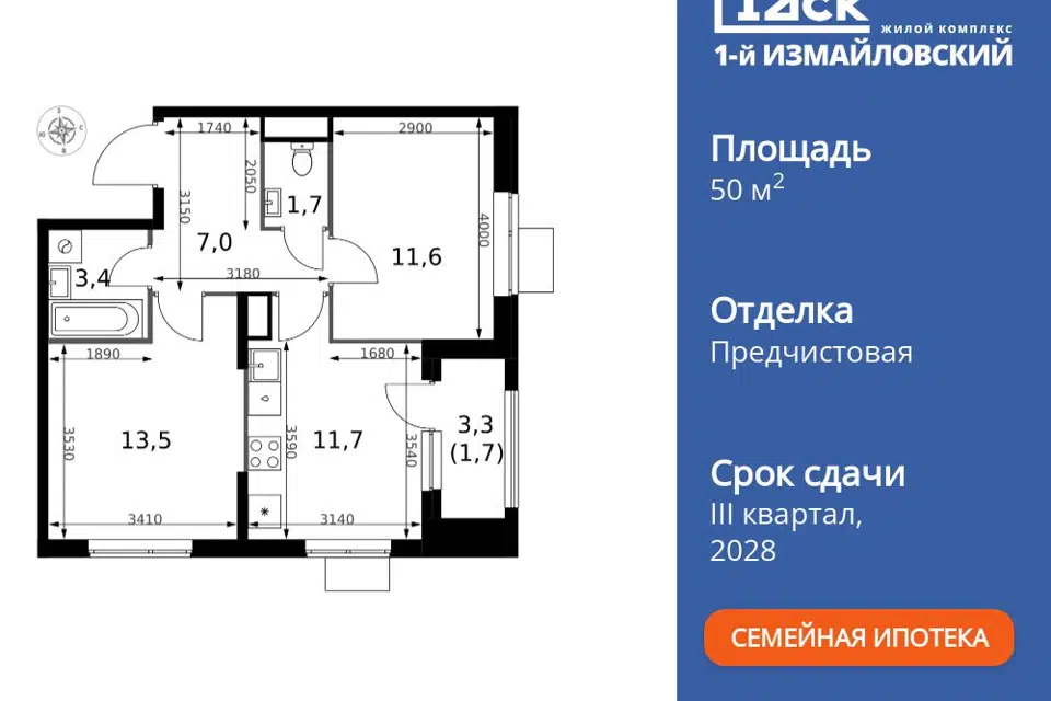 2-комн. кв., 50.3 м², 15/31 этаж