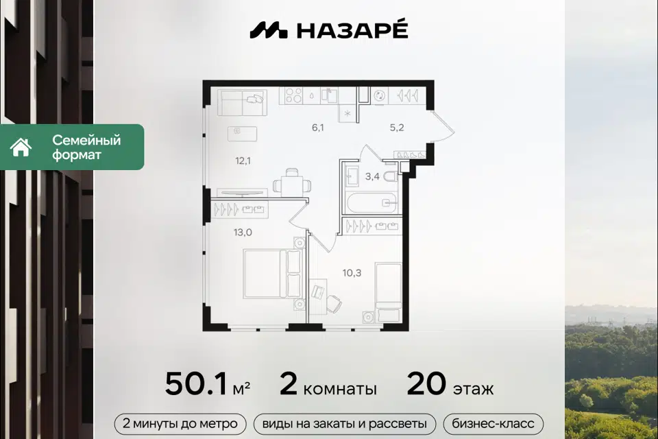 2-комн. кв., 50.1 м², 20/31 этаж