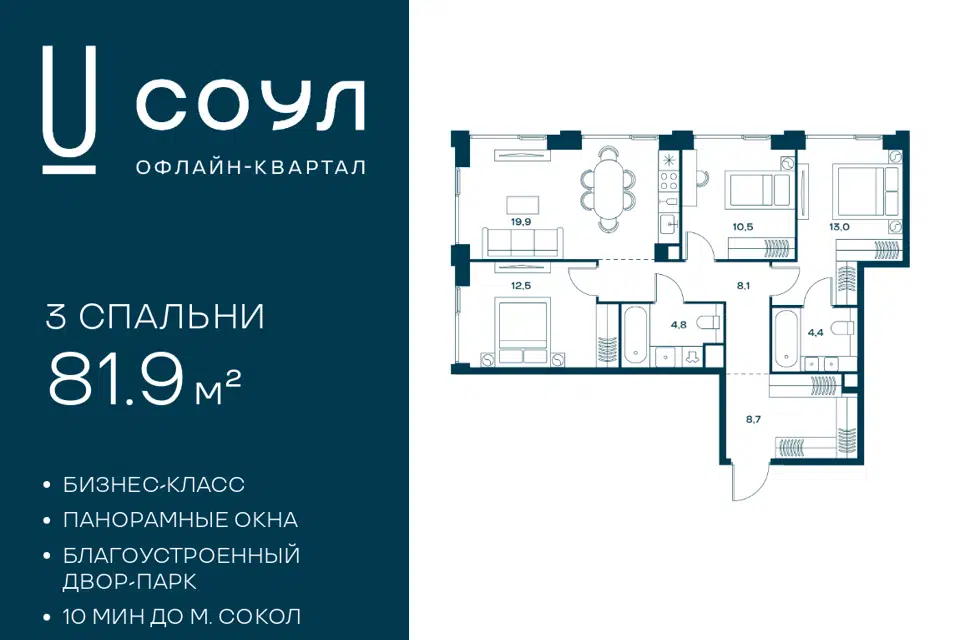 3-комн. кв., 81.9 м², 7/9 этаж