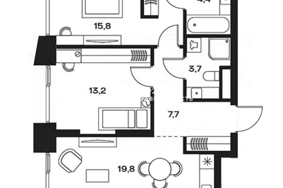 2-комн. кв., 52.6 м², 4/12 этаж
