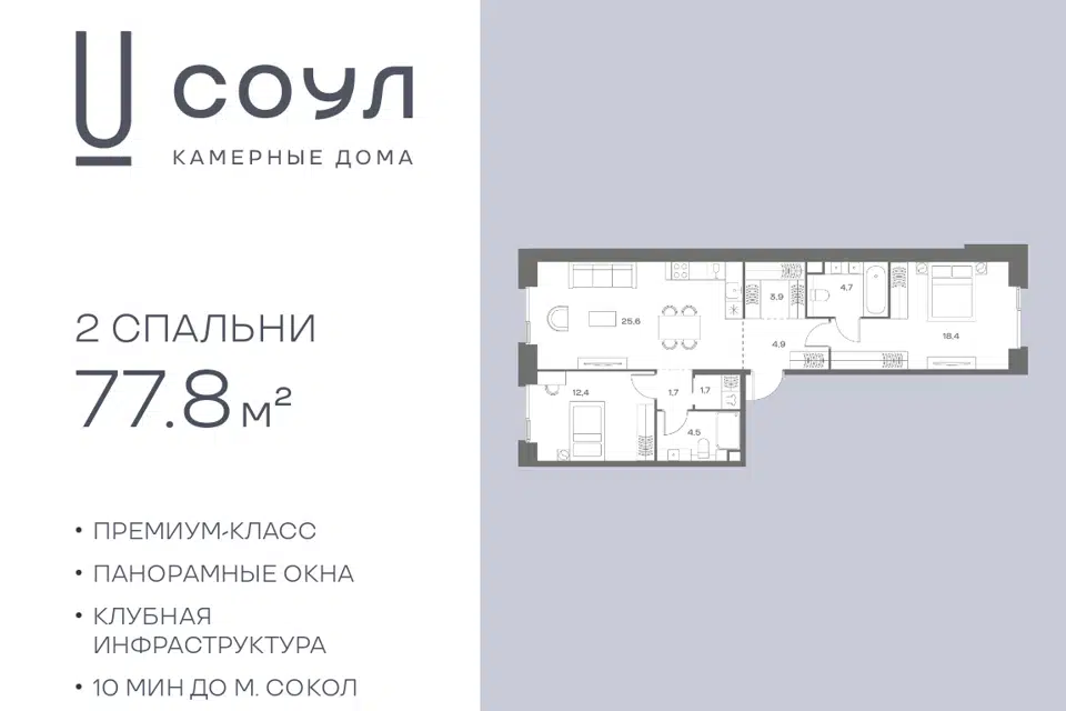 2-комн. кв., 77.8 м², 5/9 этаж