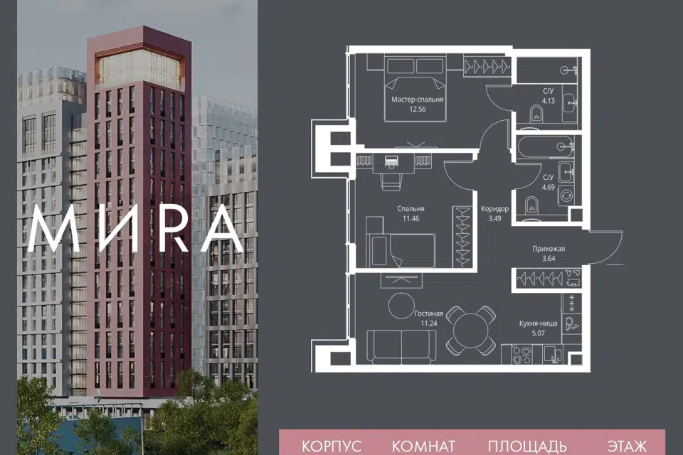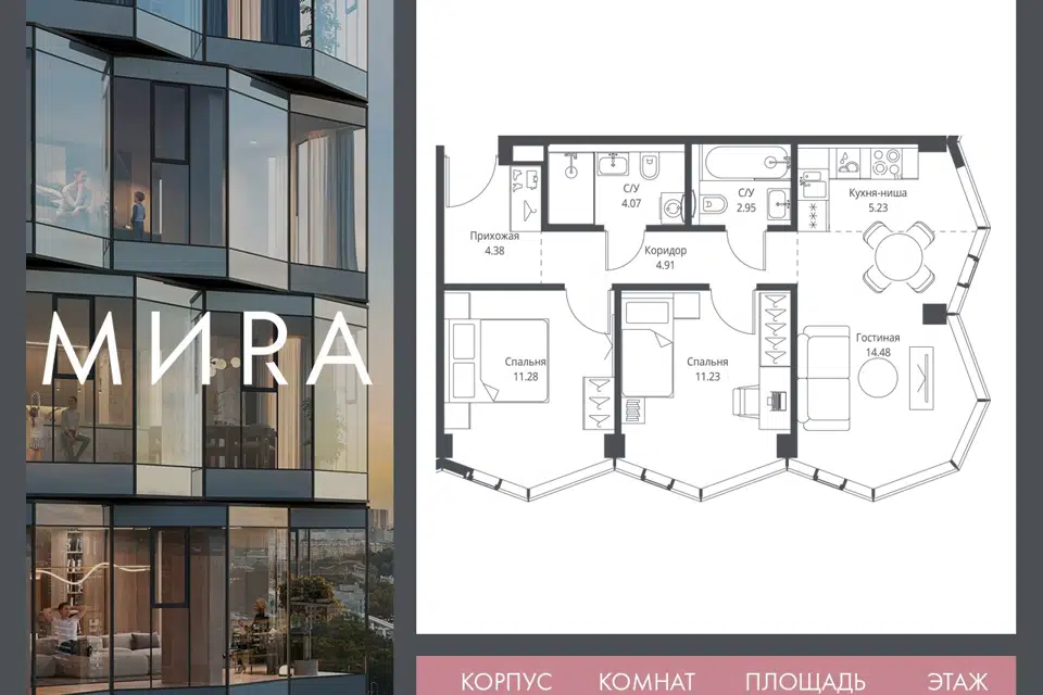 2-комн. кв., 56.28 м², 21/23 этаж