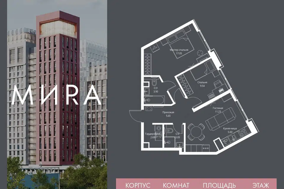 3-комн. кв., 82.78 м², 17/23 этаж