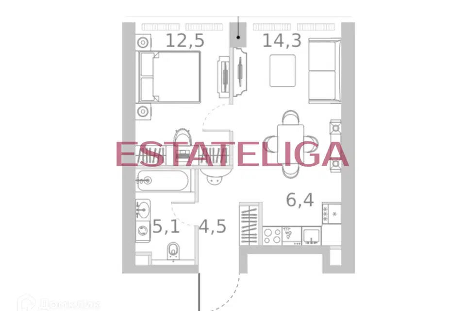 1-комн. кв., 42.8 м², 9/45 этаж