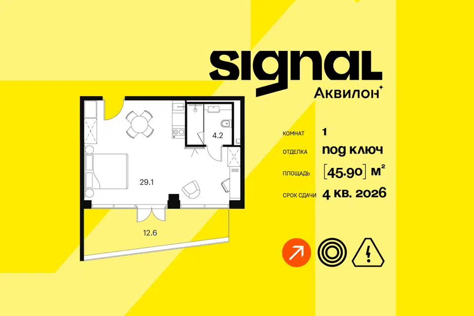 1-комн. кв., 45.9 м², 4/23 этаж
