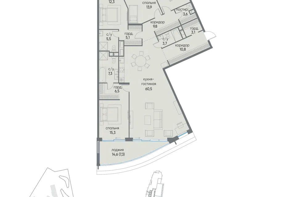5-комн. кв., 177 м², 8/19 этаж