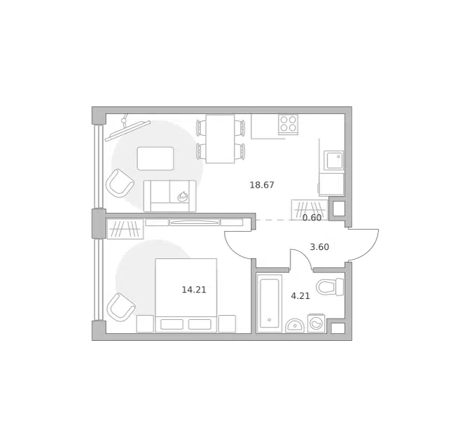 1-комн. кв., 41.29 м², 15/39 этаж