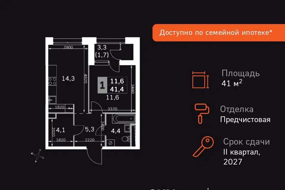 1-комн. кв., 41.4 м², 25/42 этаж