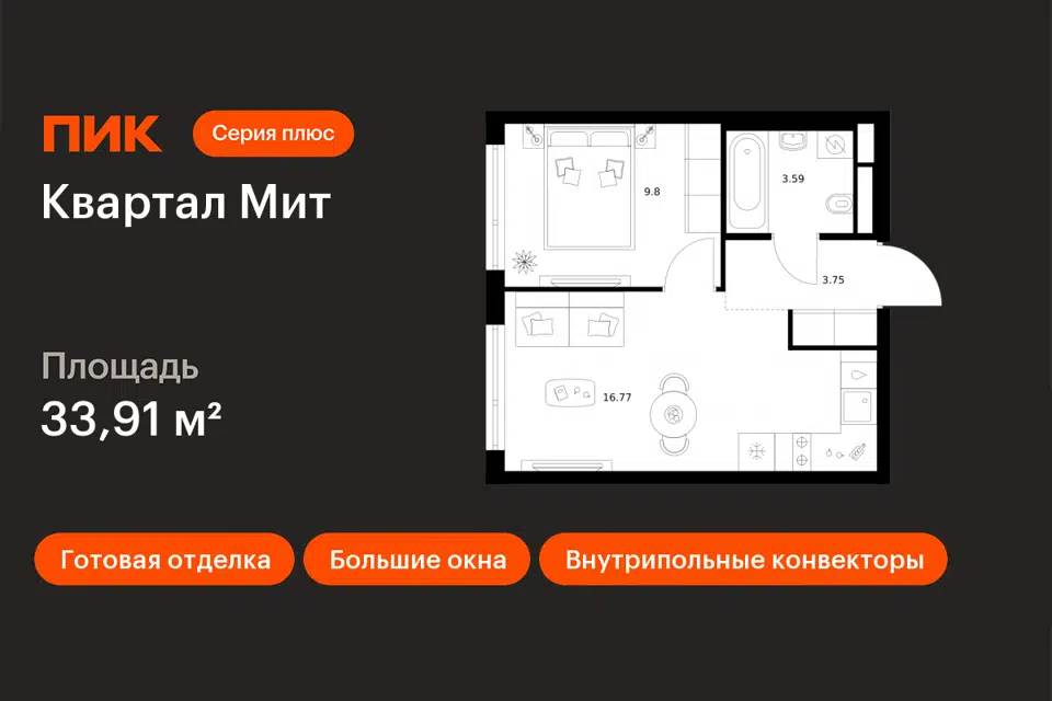 1-комн. кв., 33.91 м², 11/32 этаж