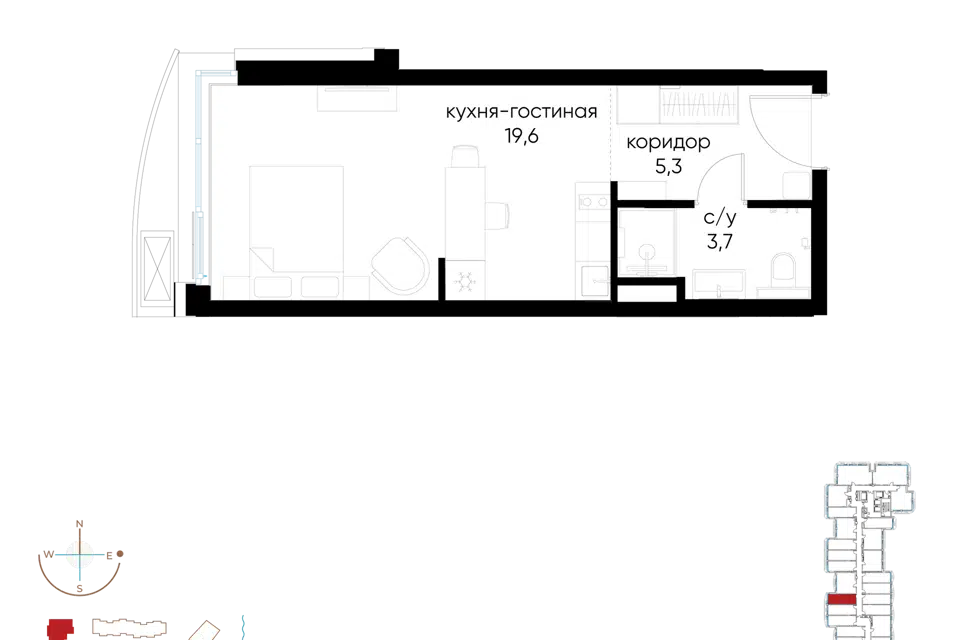 Студия, 28.6 м², 2/24 этаж