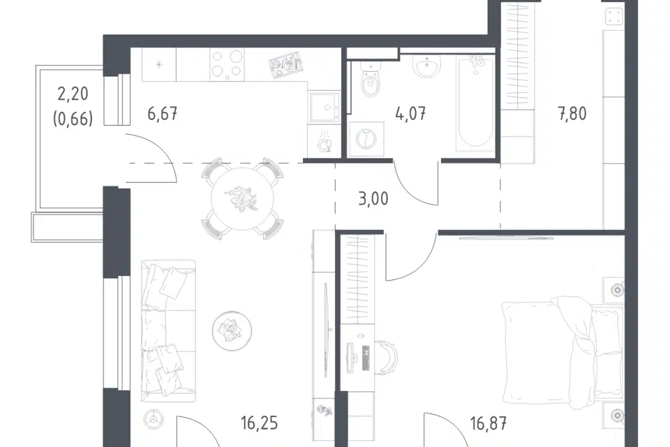 3-комн. кв., 63.2 м², 4/16 этаж