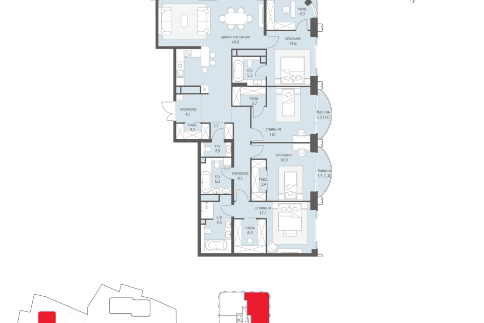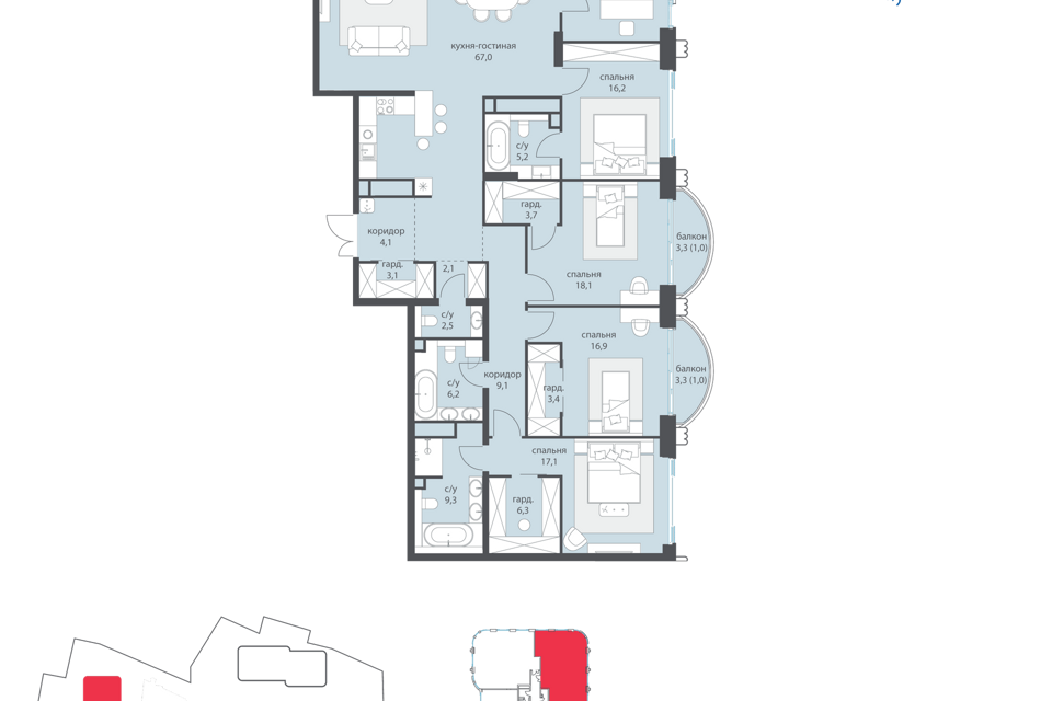 3-комн. кв., 318.6 м², 19/19 этаж