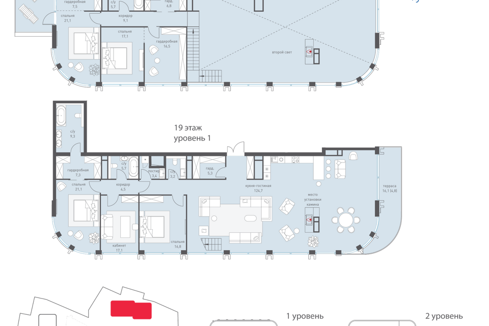 2-комн. кв., 193.8 м², 13/19 этаж