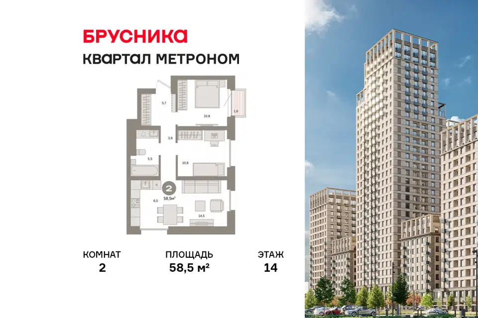 2-комн. кв., 58.5 м², 14/24 этаж