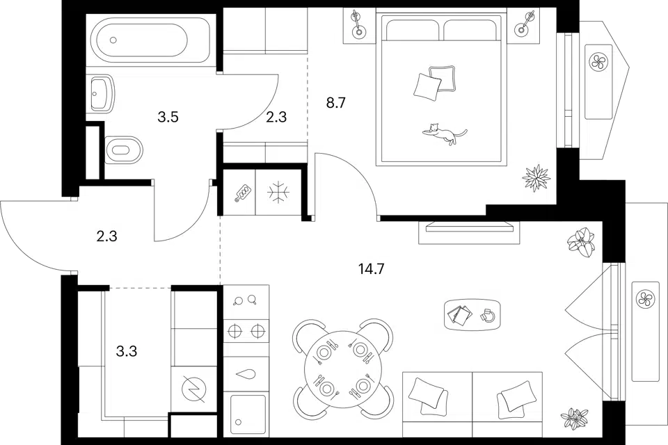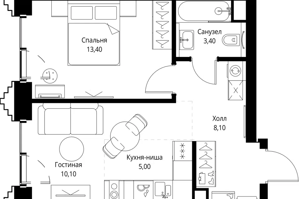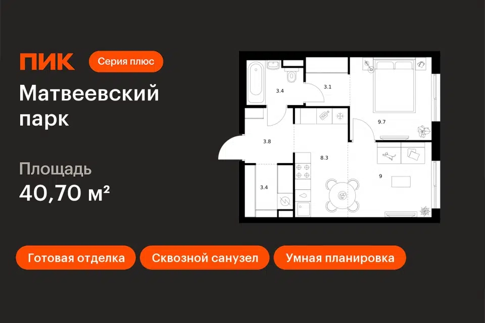 1-комн. кв., 40.7 м², 1/31 этаж