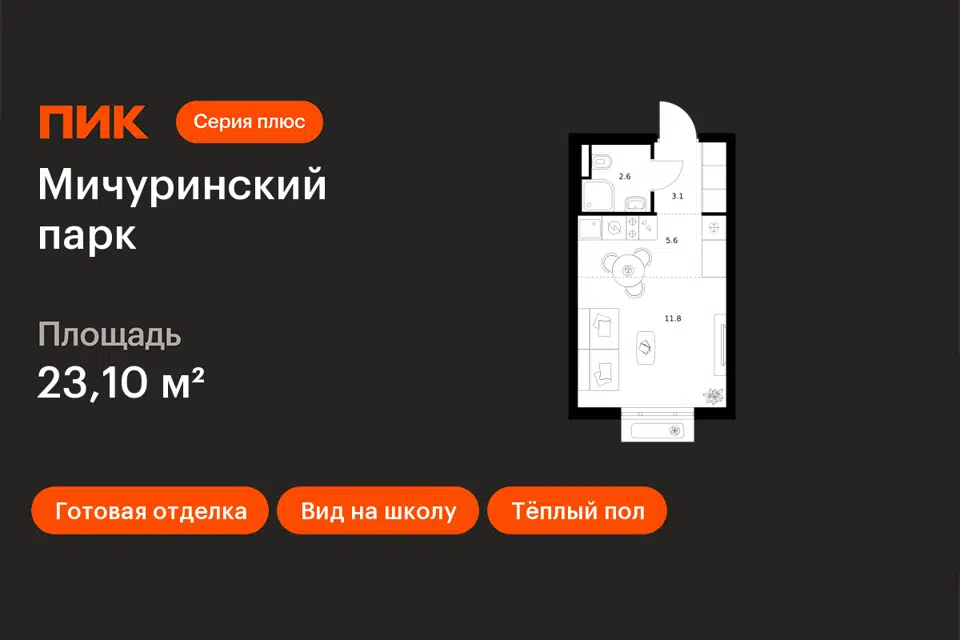 Студия, 23.1 м², 2/32 этаж