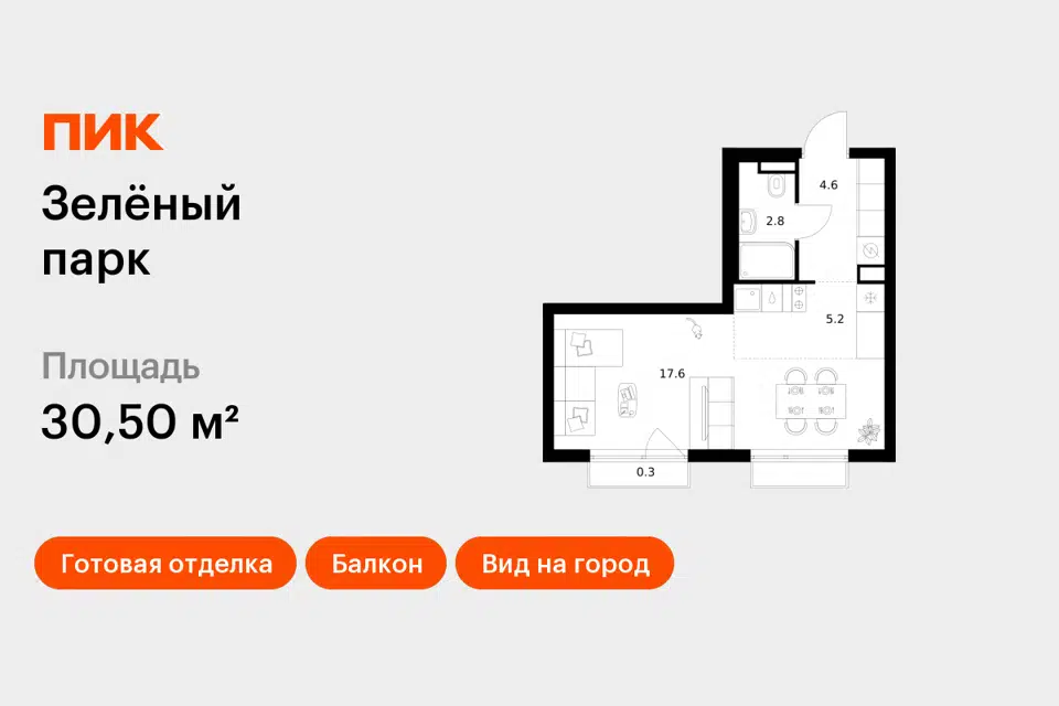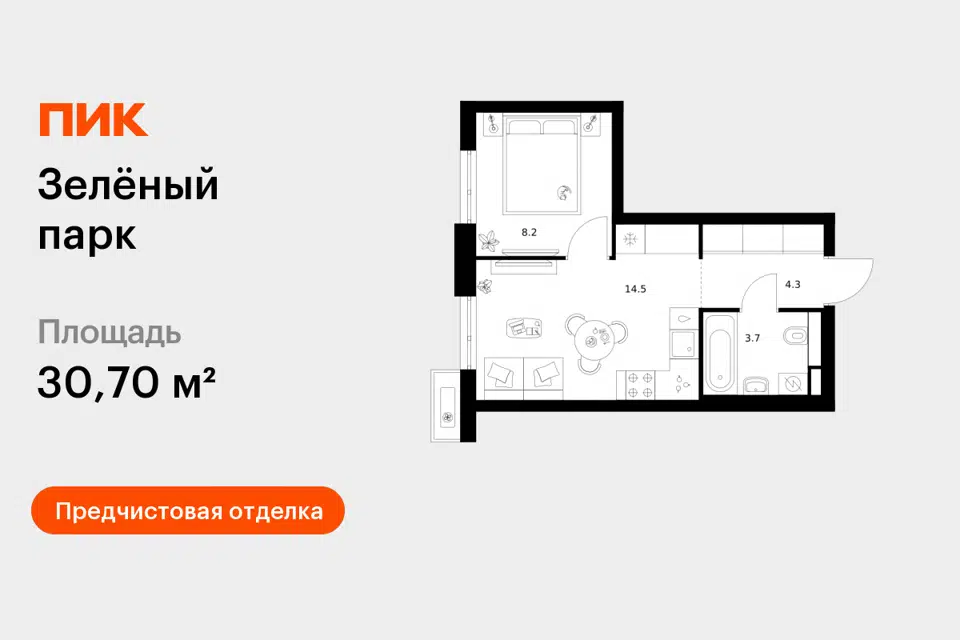 1-комн. кв., 30.7 м², 2/24 этаж