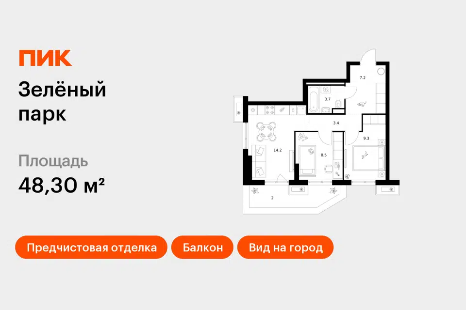 2-комн. кв., 48.3 м², 3/24 этаж