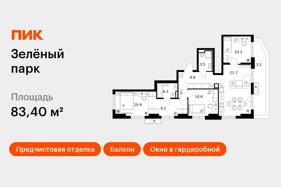3-комн. кв., 83.4 м², 12/24 этаж