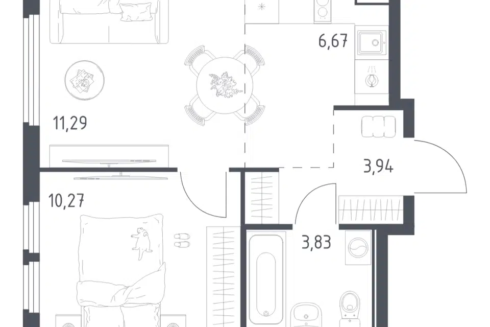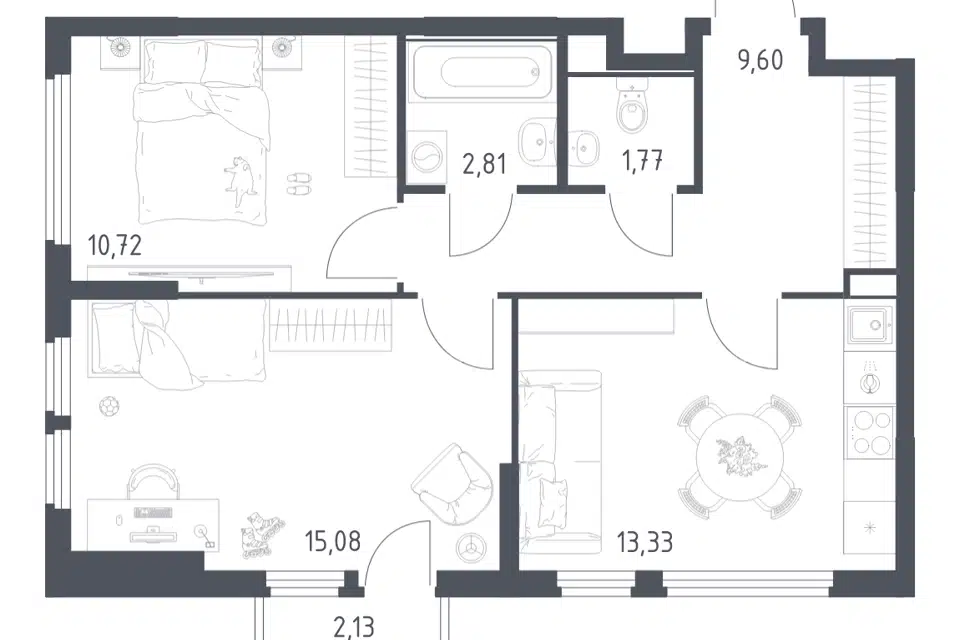 2-комн. кв., 57.8 м², 12/18 этаж