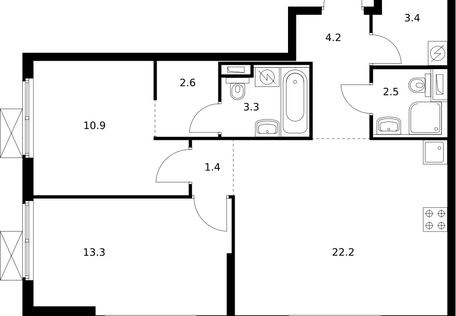 3-комн. кв., 75.9 м², 9/17 этаж