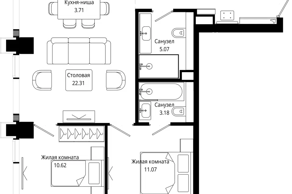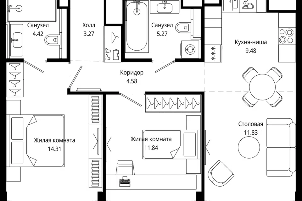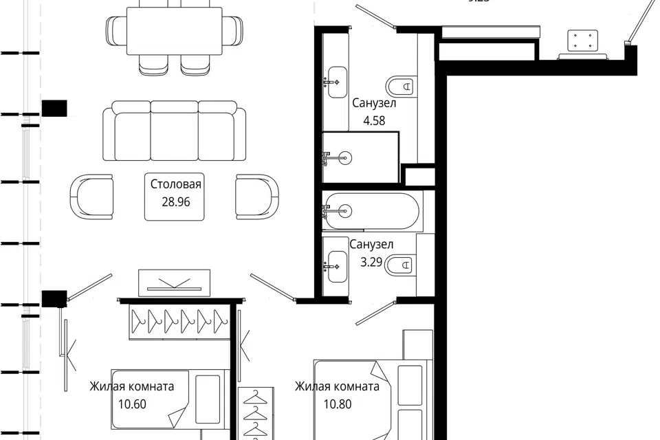 3-комн. кв., 106.9 м², 54/55 этаж