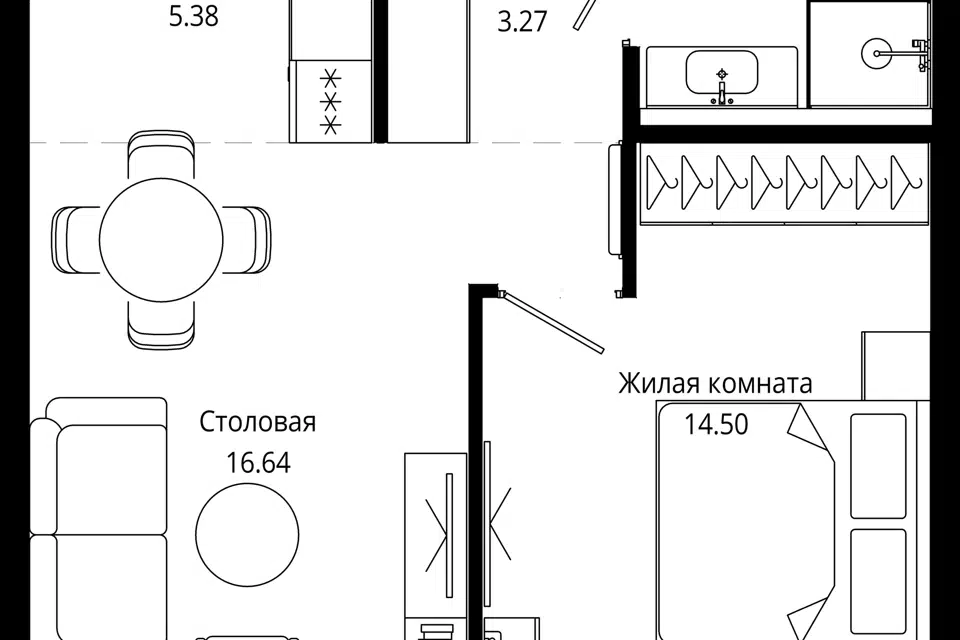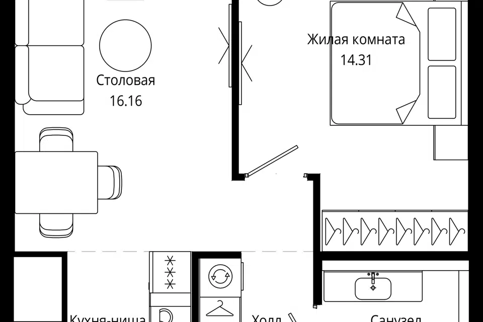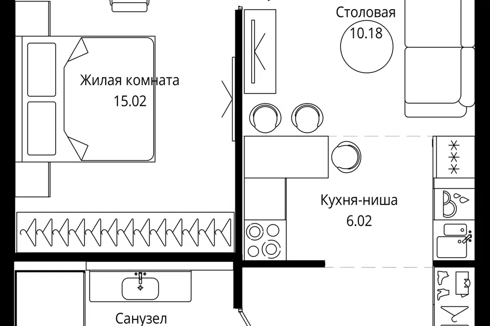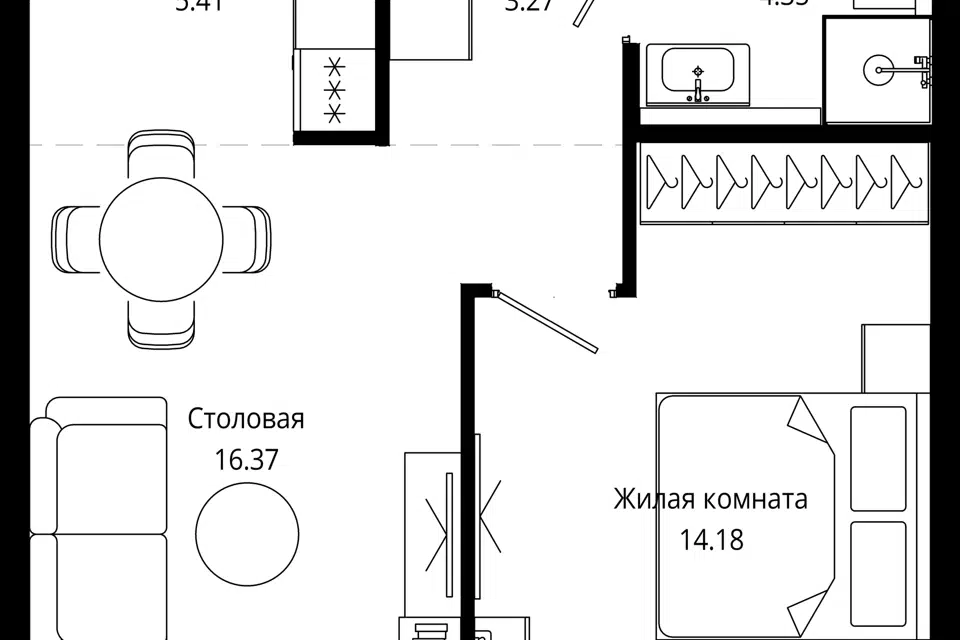 1-комн. кв., 43.5 м², 10/55 этаж