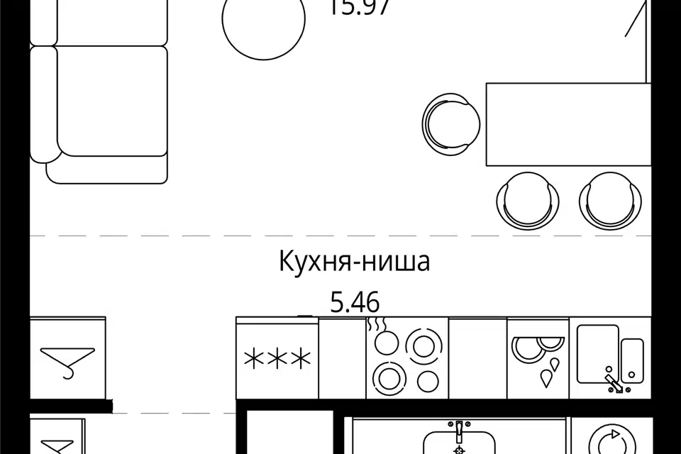 Студия, 15 м², 1/9 этаж