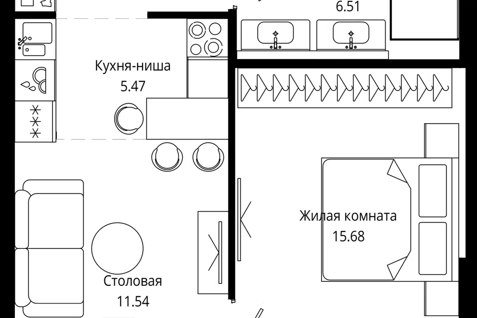 1-комн. кв., 43.9 м², 51/55 этаж